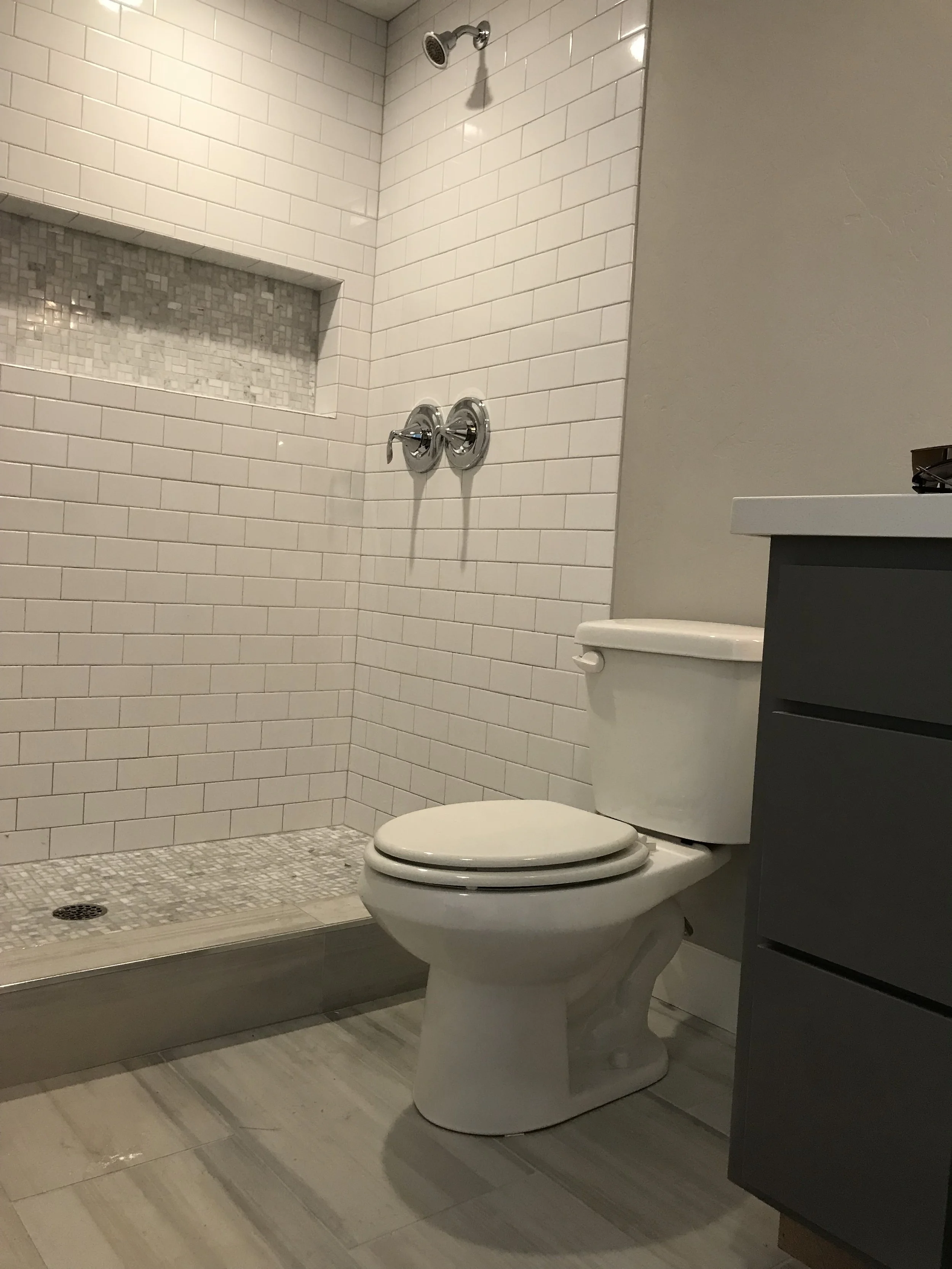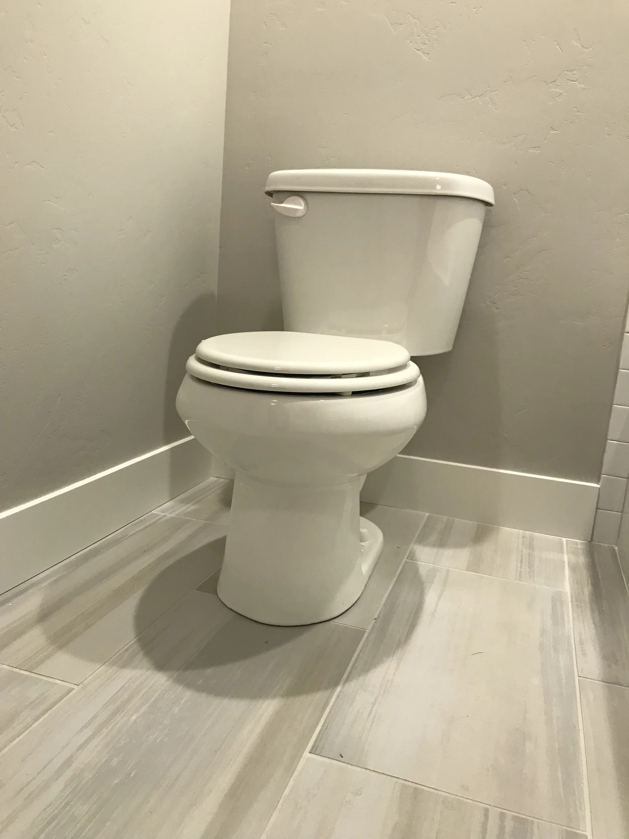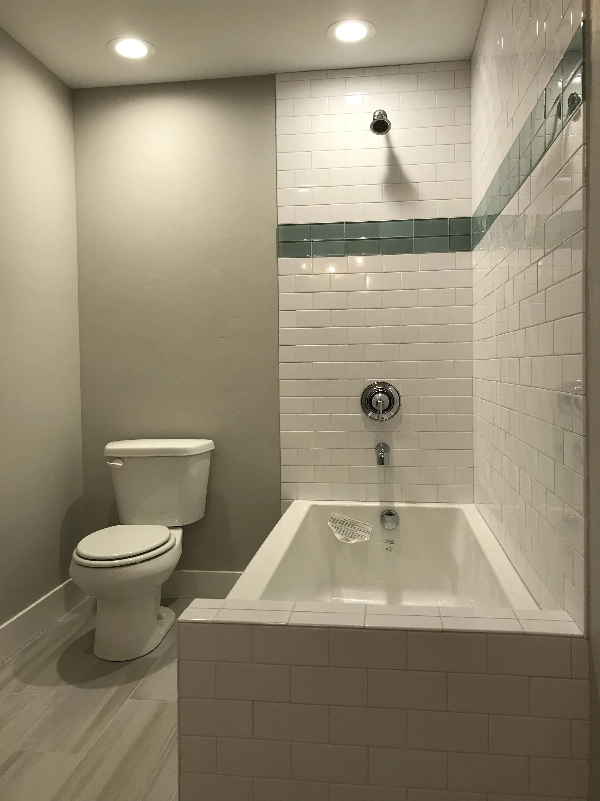 - ROUGH: Basic installation of water lines and drainage. Also installation of laundry room floor drain, washer box and tub occur during the rough stage.